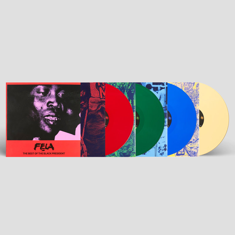 Fela was a musician, arranger, producer, political radical, outlaw and the originator of Afrobeat. Previously available digitally and on compact disc, this is the first time the complete compilation is available on vinyl. It is a 4 LP set, with updated cover art in a hardbound book jacket and printed inner sleeves. The individual LPs are pressed on red (sides A/B), green (sides C/D), blue (sides E/F) and yellow (sides G/H) vinyl. This edition features a Ludo game board as the back cover and comes with a perforated set of game pieces, dice, and instructions on how to play.